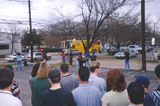 Here are some photos taken on the weekend of Friday, February 5, 1999. The Rushmore bus tour came through Austin. My friend Josh and I are big fans of Wes Anderson and the Wilson clan, so we spent a couple of hours at the bus tour. While there we met up with my friend Erik. Later that evening we saw Rushmore (the third time for Josh and I, the first for Erik) at the Arbor 7. Wes and Jason were present for part of the movie. Here are some photos from that weekend, including some that were taken just to use up the rest of the film in the camera: