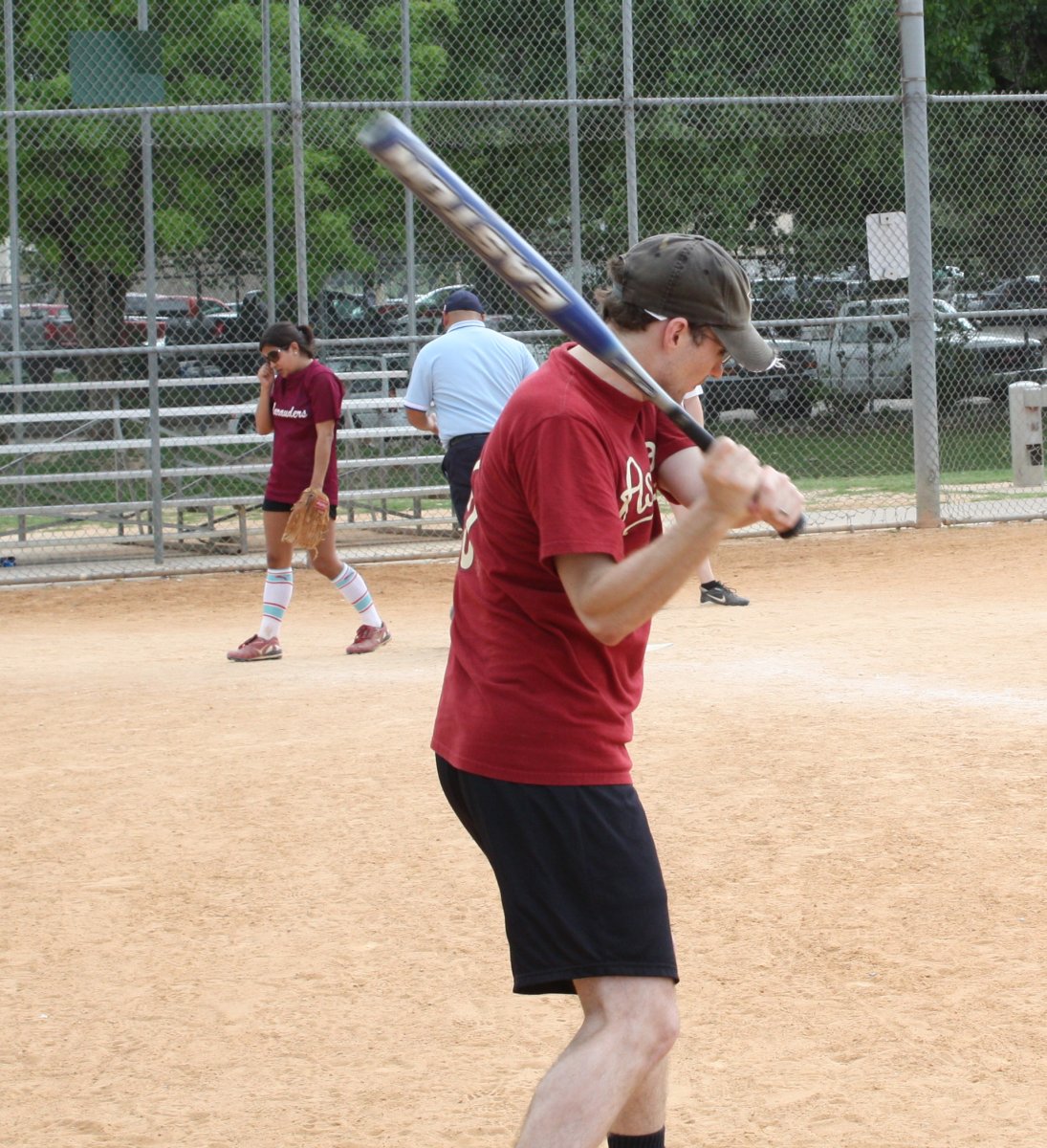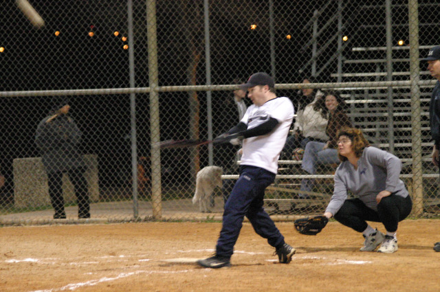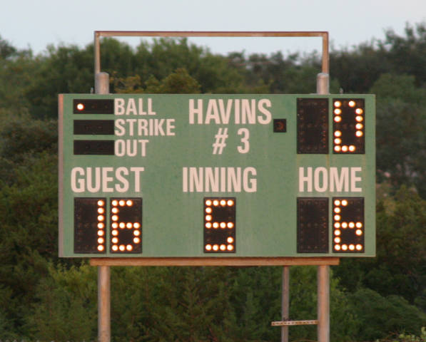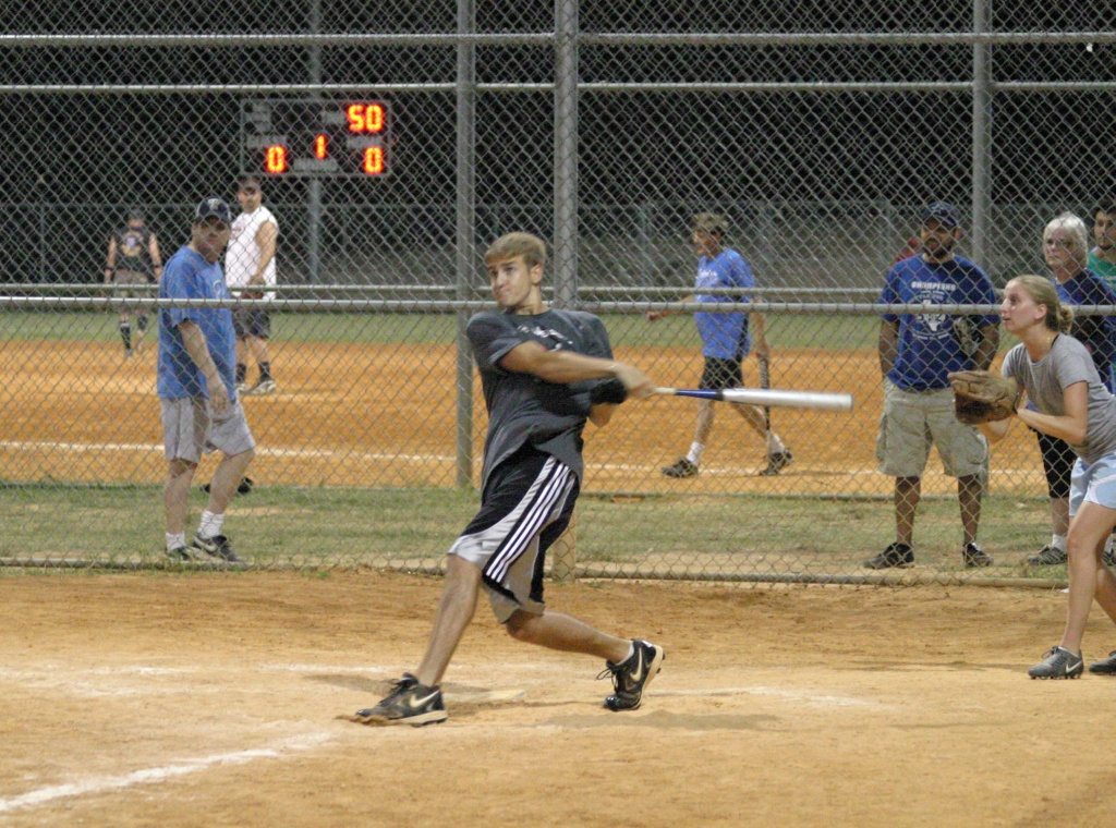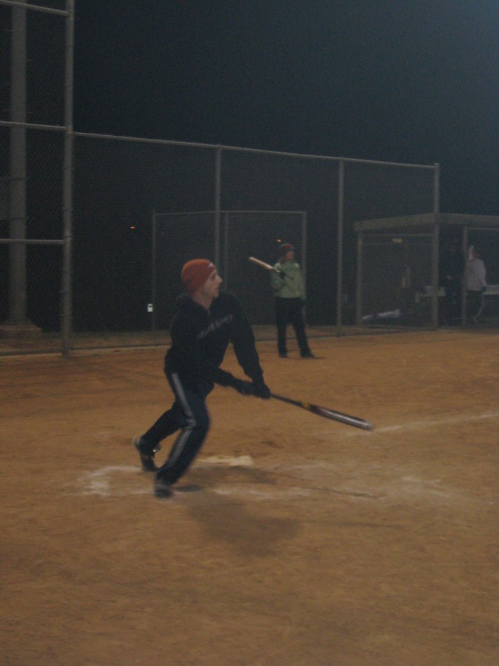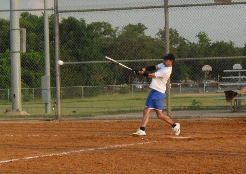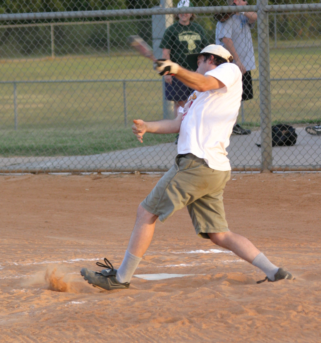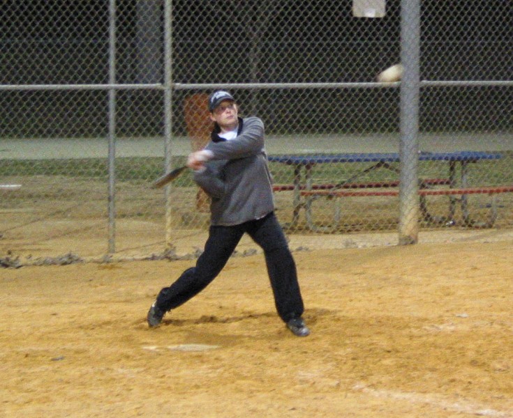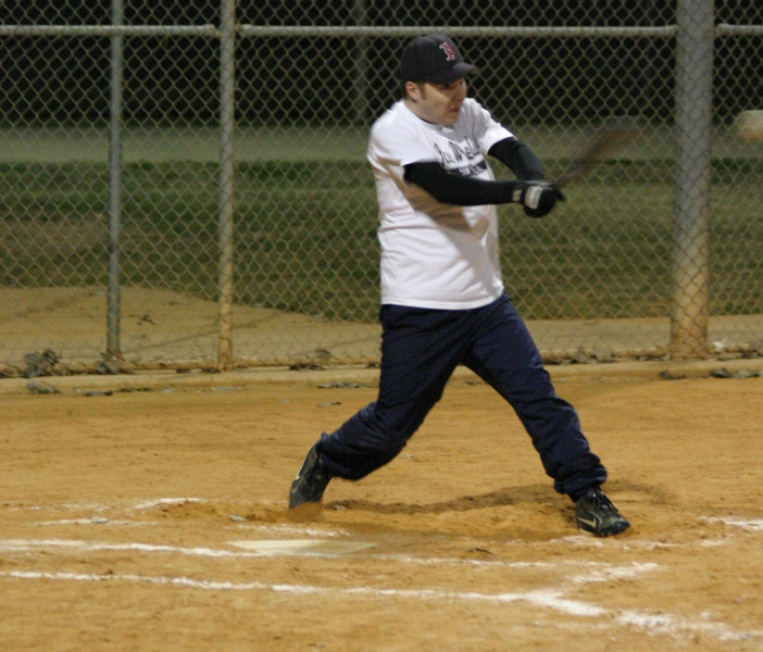 Chris E launches his 2-run triple in the top of the 4th inning. Tim R is visible on second base. |