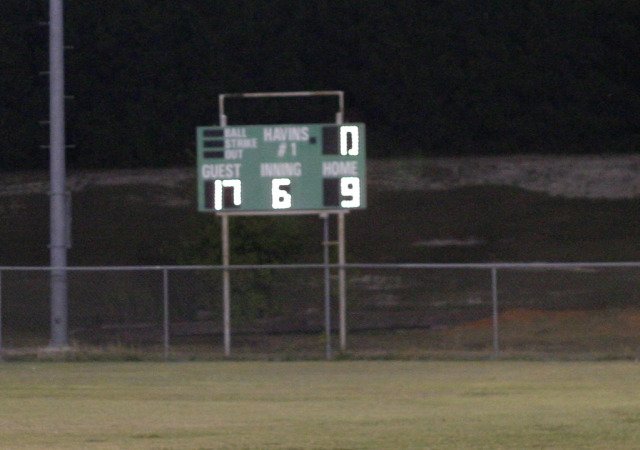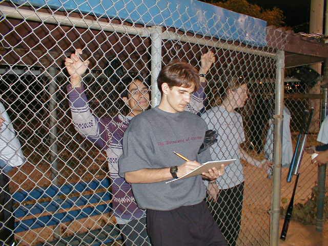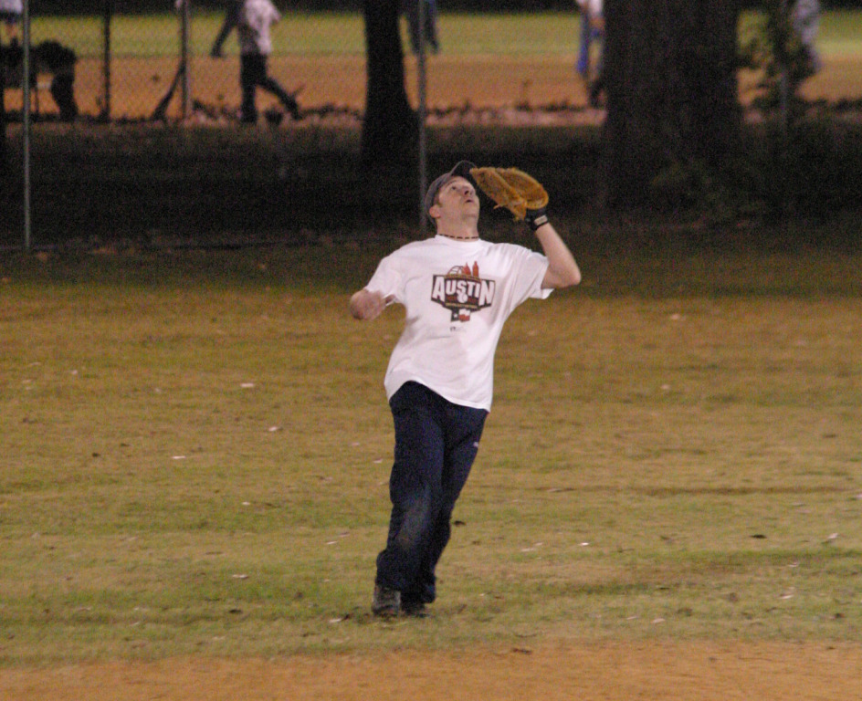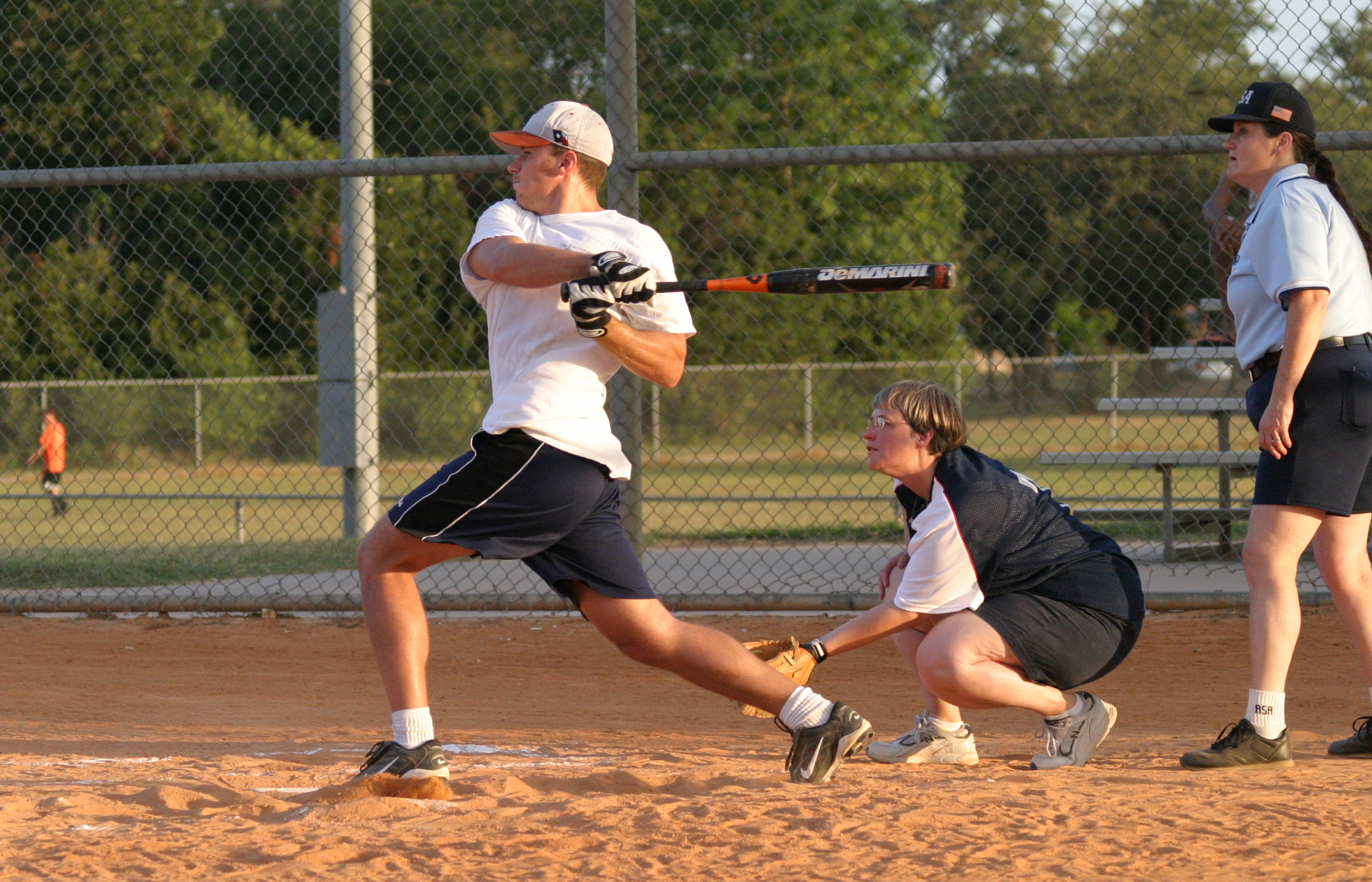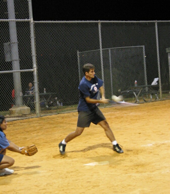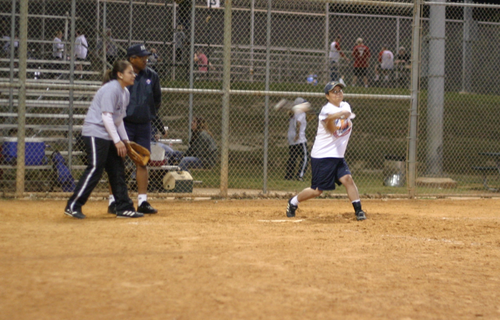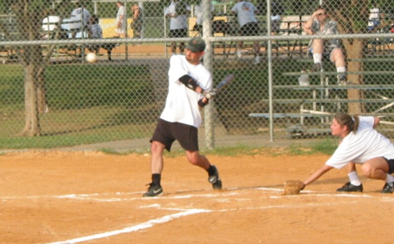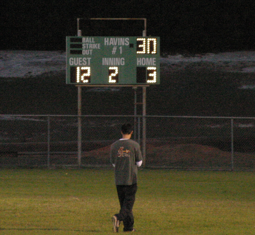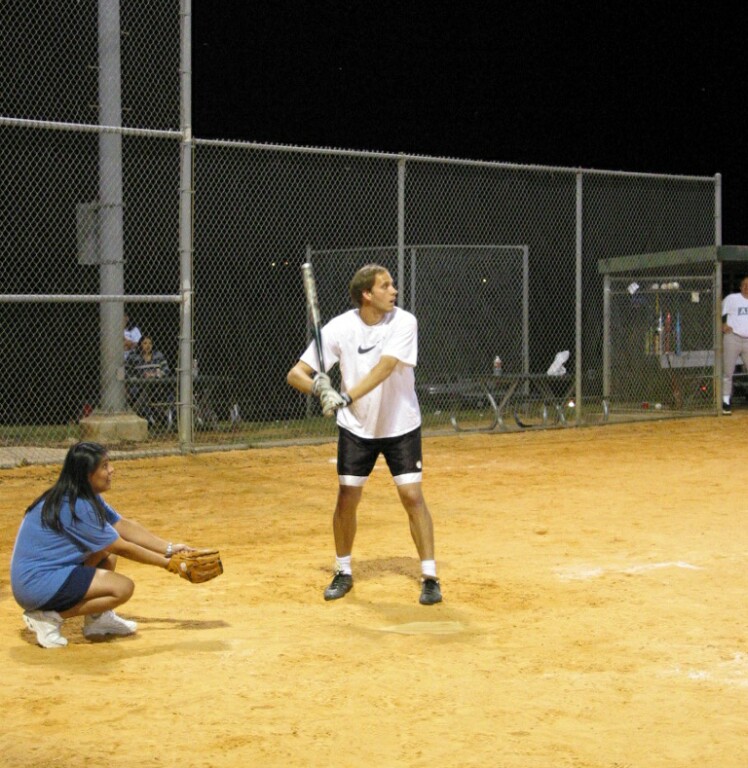 Chris E launches his 2-run triple in the top of the 4th inning. Tim R is visible on second base. |