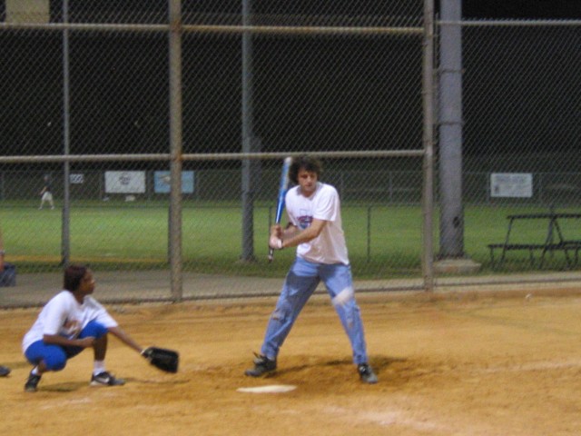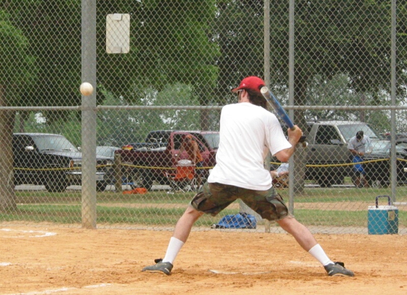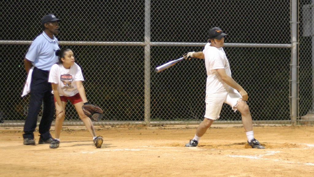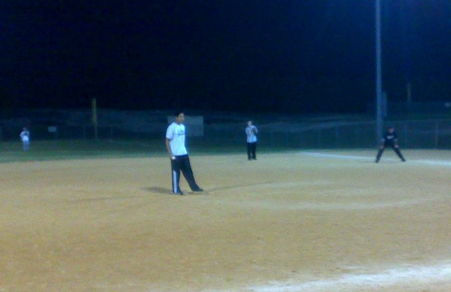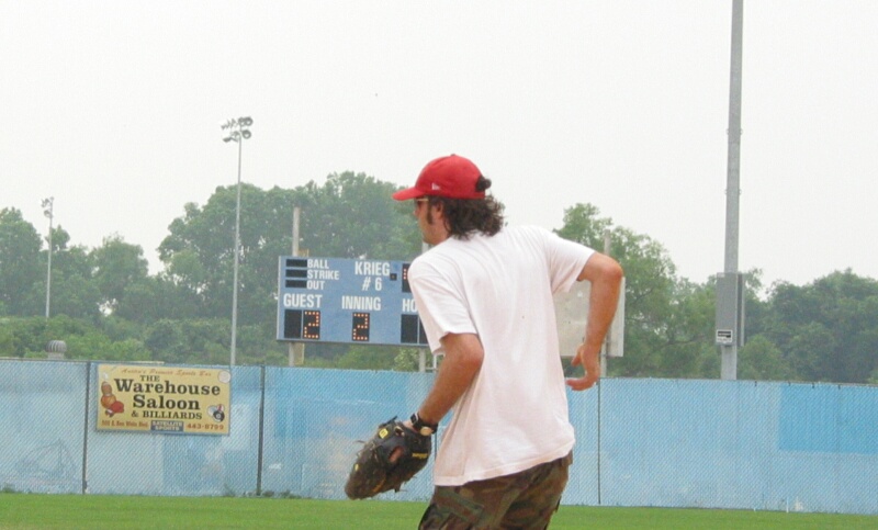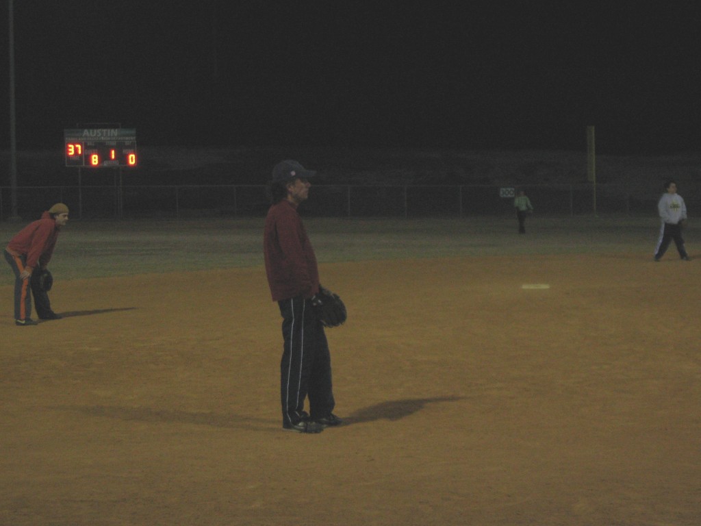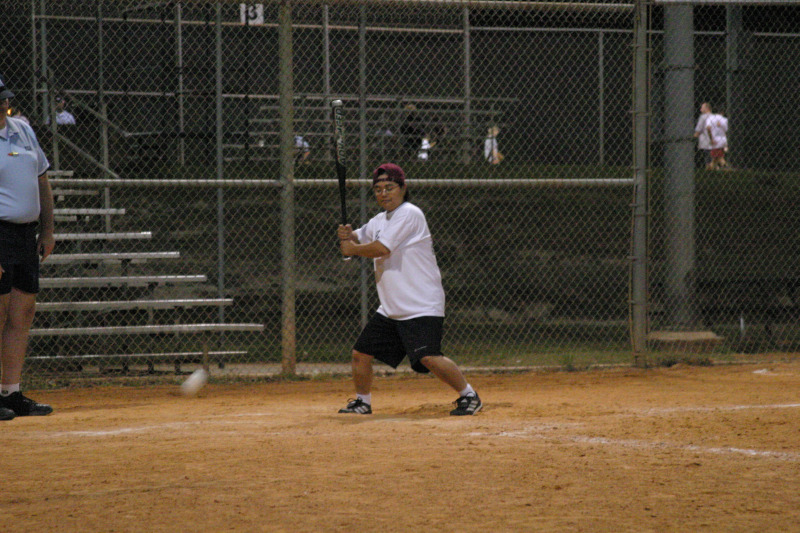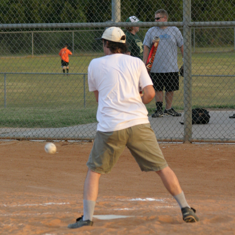 Shawn W takes a pitch in the top of the 4th inning. Matt is visible at third base coach. |