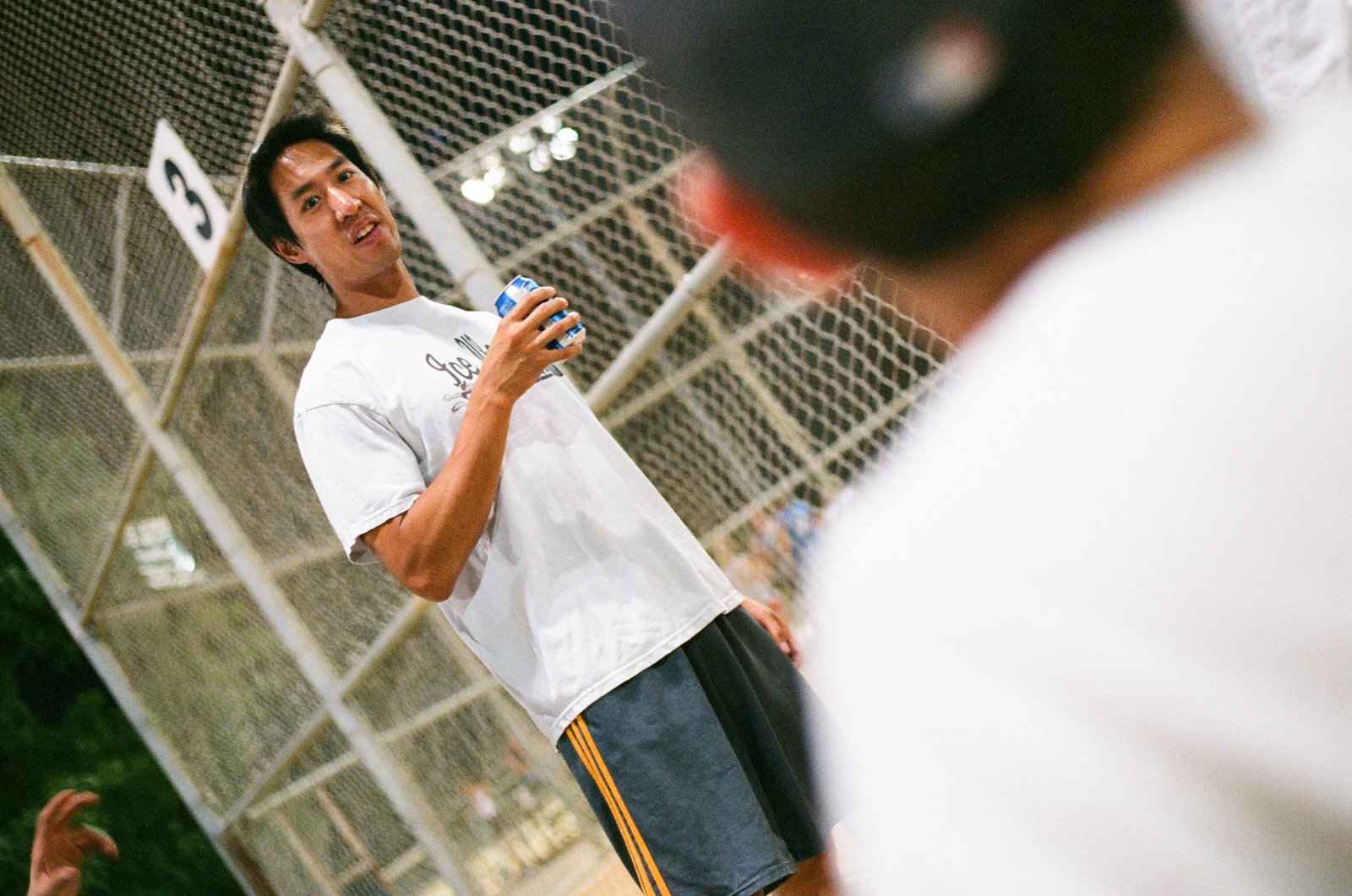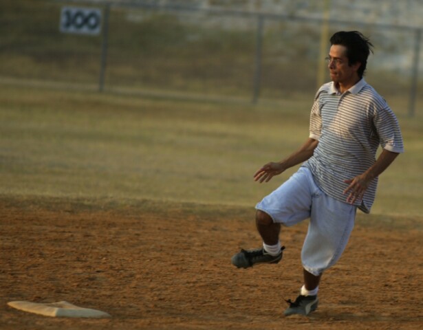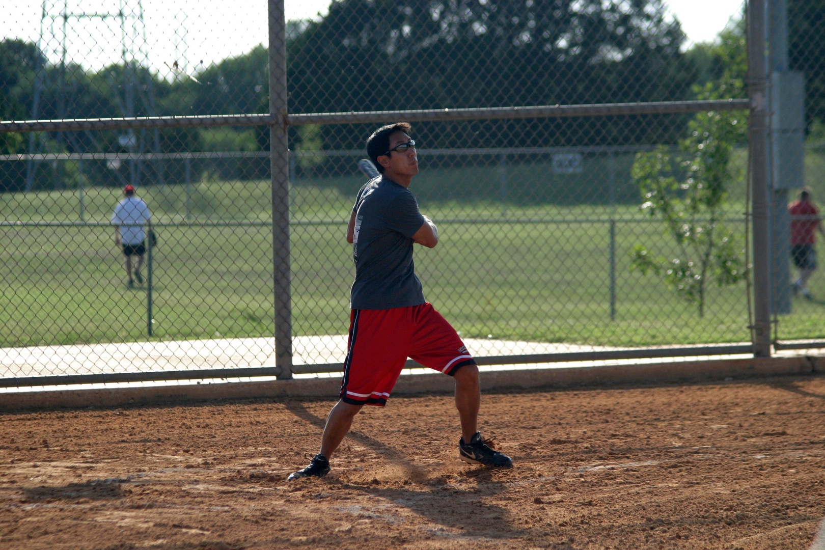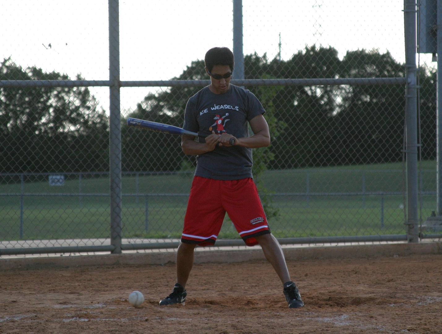 Shawn W takes a pitch in the top of the 4th inning. Matt is visible at third base coach. |