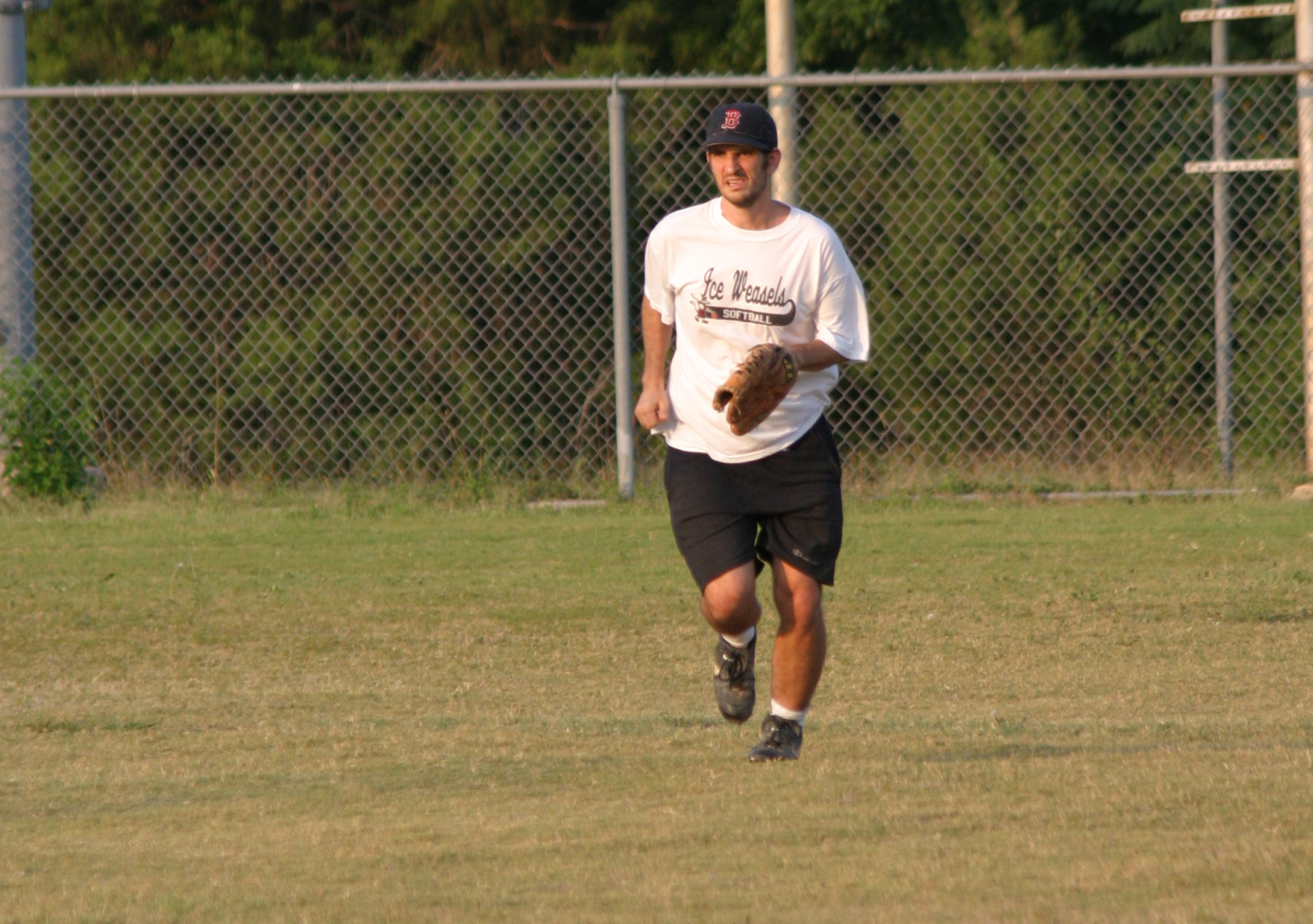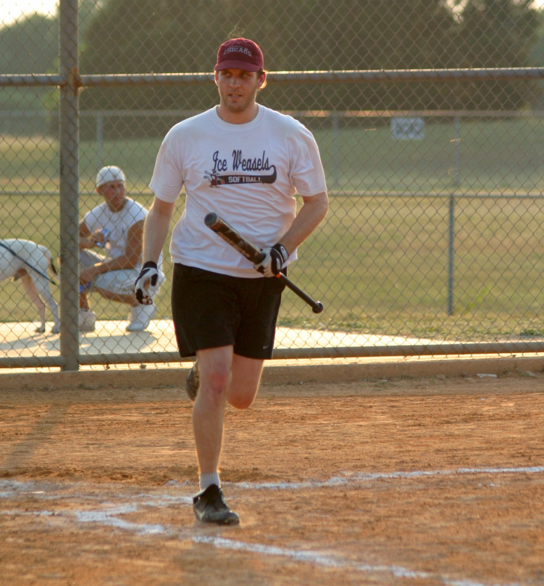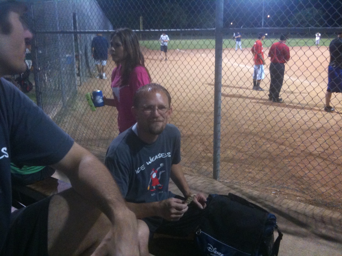 Neil walks toward the bleachers while the Weasels bat in the top of the 5th inning. |