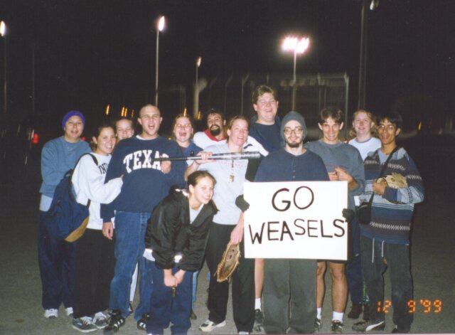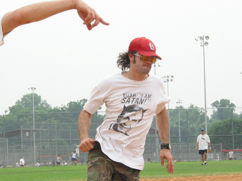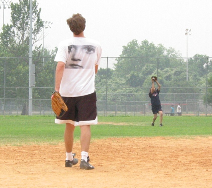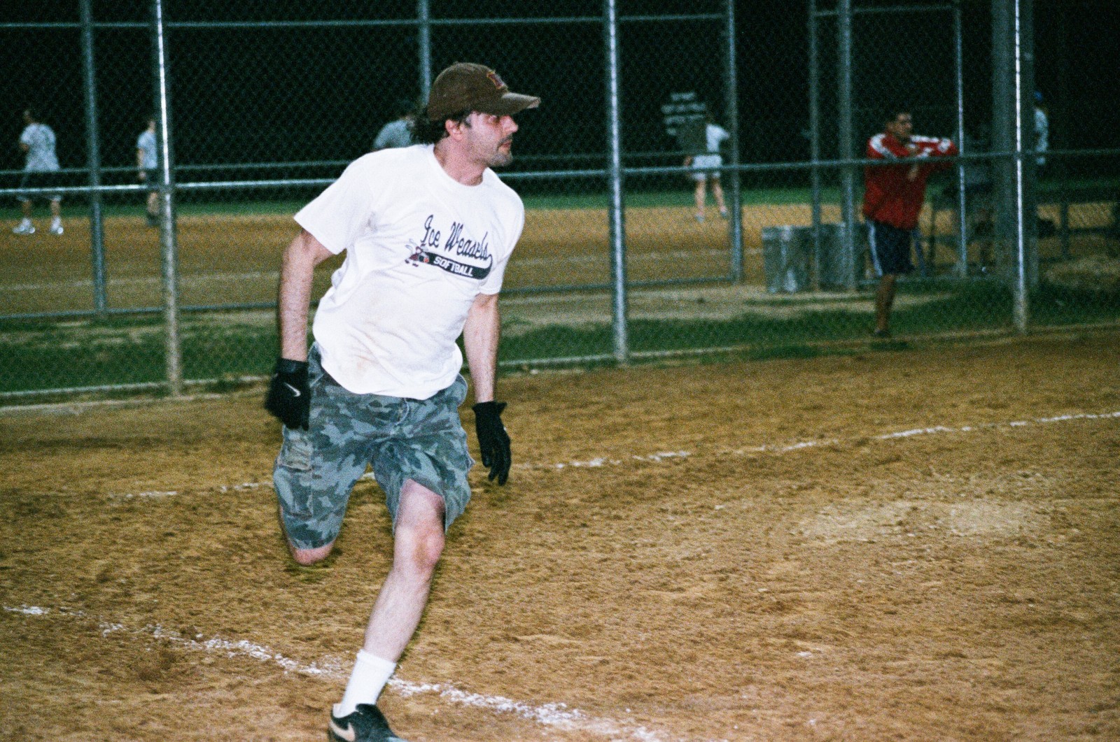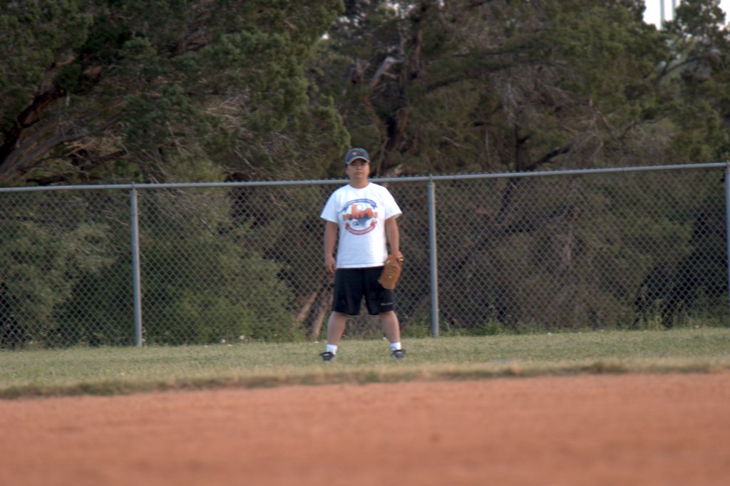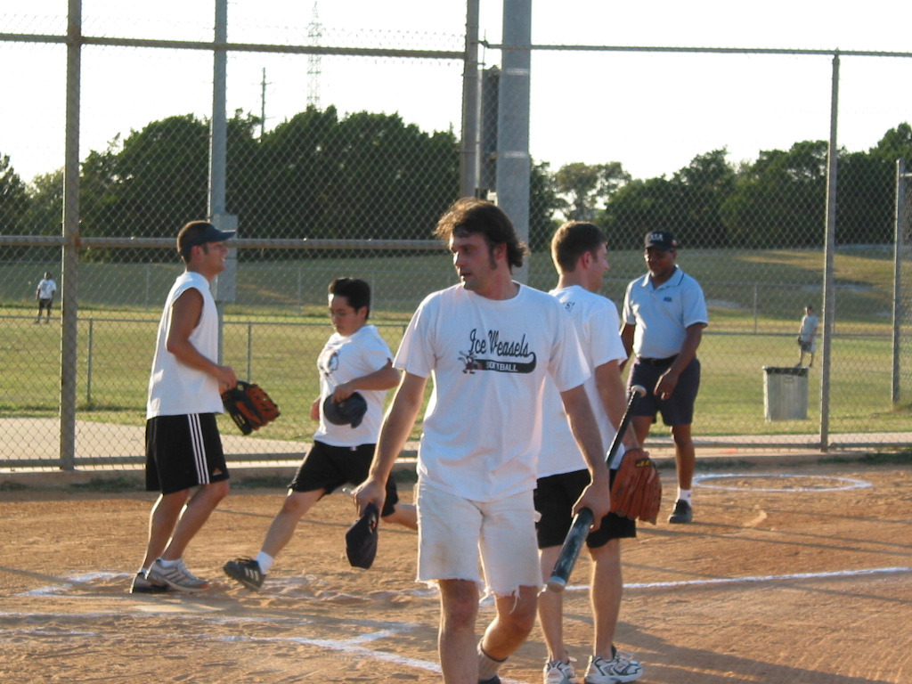 Neil walks toward the bleachers while the Weasels bat in the top of the 5th inning. |