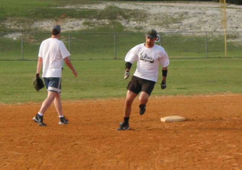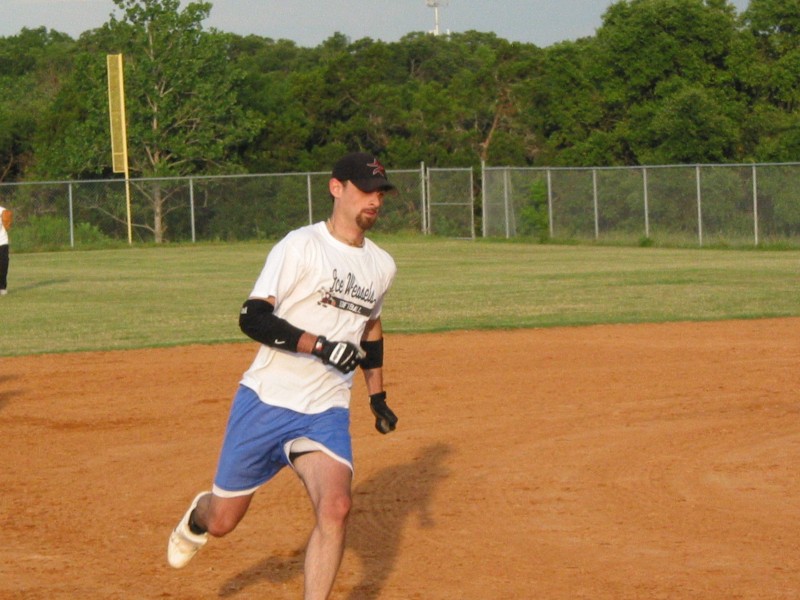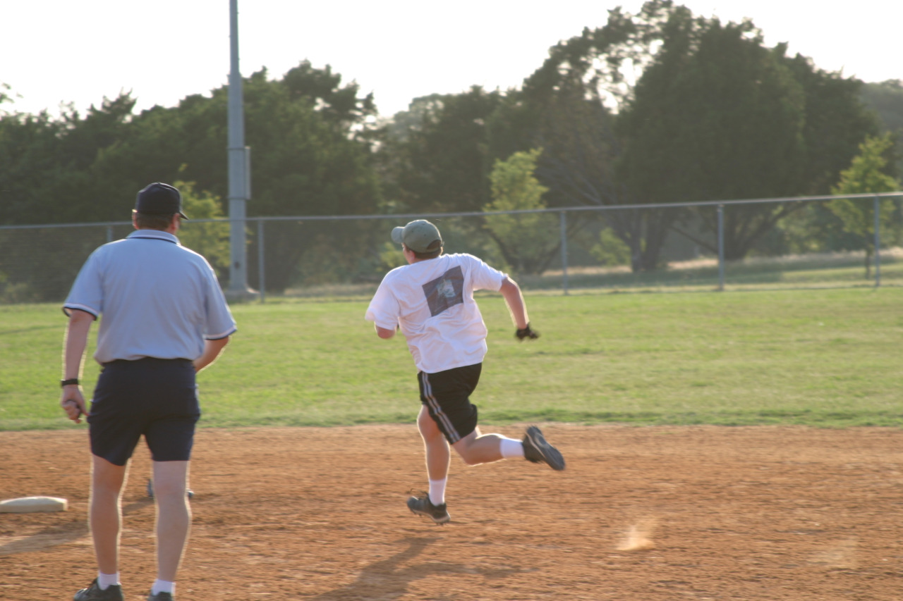 Newton approaches second base on his inside-the-park home run. Shawn W is partially visible as third base coach. |