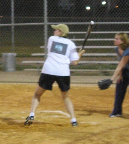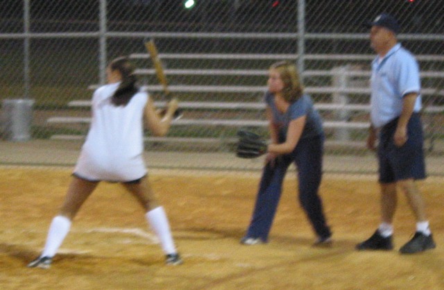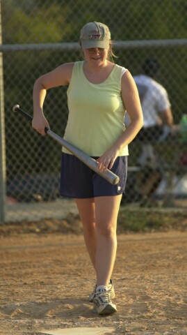 Becky calls for time as she steps to the plate to lead off the top of the 5th inning. |