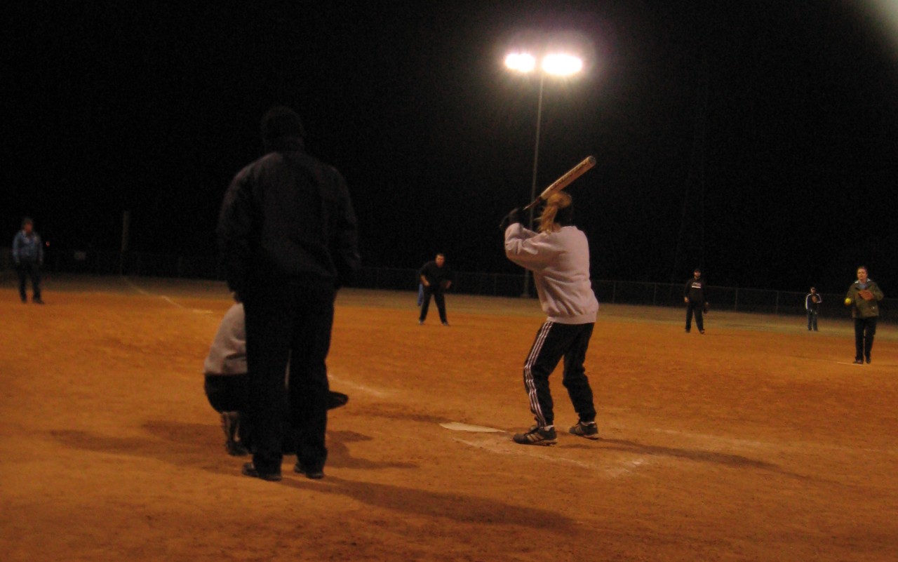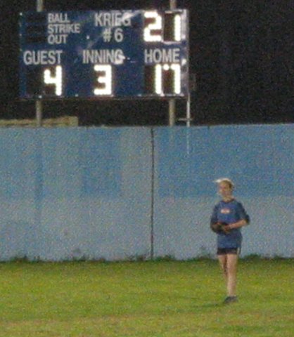 Lindsay H still at bat in the top of the 4th inning, but no longer looking at the umpire . |