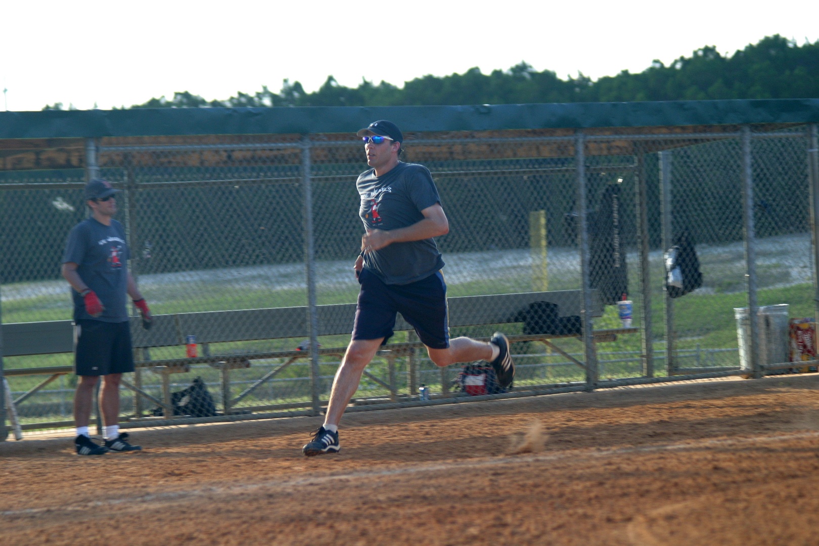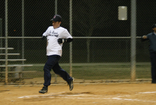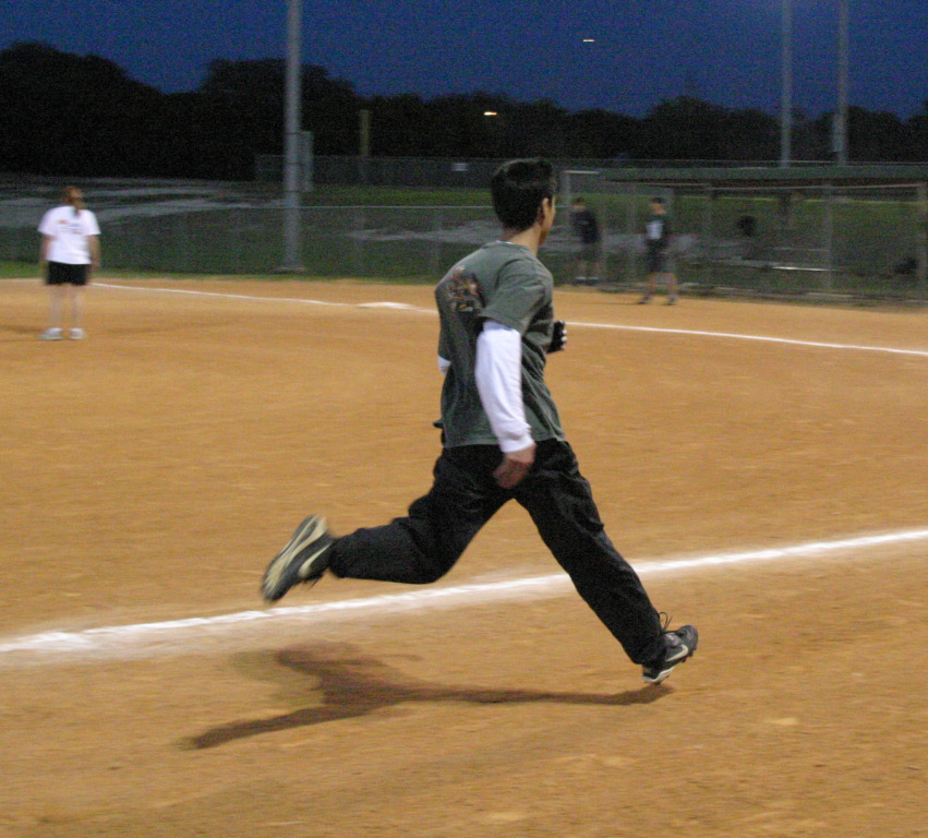 A blurry Matt crosses the plate in the top of the 2nd inning. |