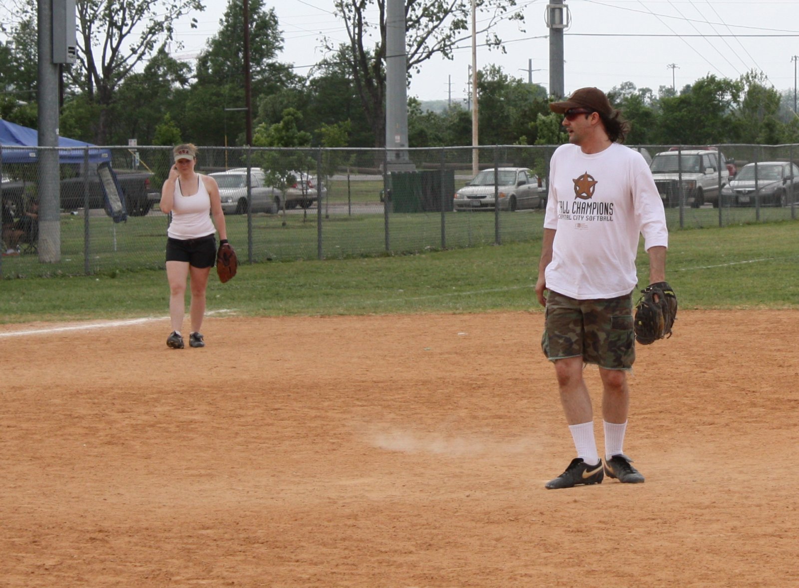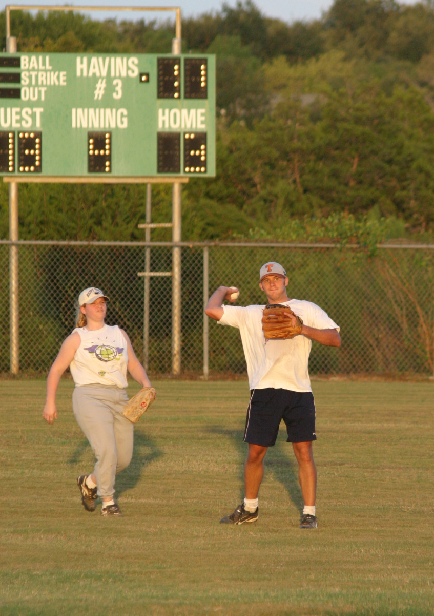 Krissy and Neil. Krissy appears to have just fielded a ball. |