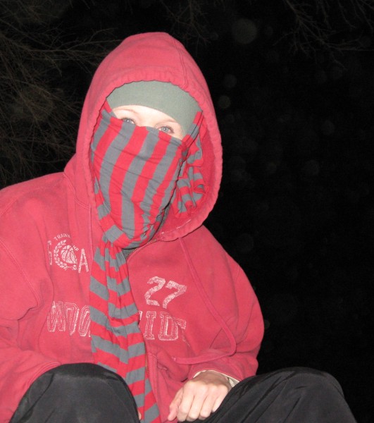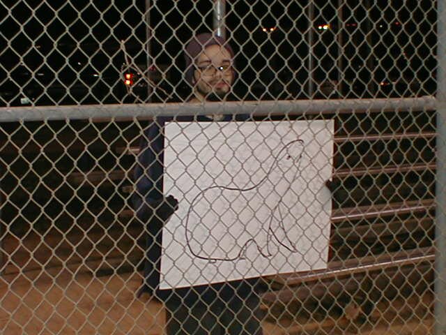Carrie M in the dugout. Someone's arm is also featured, but I am not able to identify the owner of the arm. Carrie M, on the other hand, performed careful analysis on the photo. "In that picture with me in the dugout, you say that you can't identify the owner of the arm. Well, if you look closely, you'll notice that it's a lefty glove which pretty much ensures that its Laurie S's arm (even tho Dean is a lefty and was also at the game). If you're even more observant, you'll recognize the positioning of the wrist and fingers and coloration of the arm and also come to the conclusion that is it Laurie S's arm." (Quoth Carrie M) |