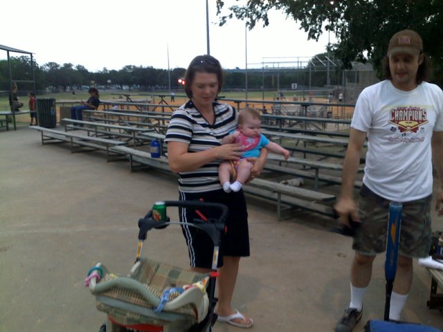 Newton scores in the top of the 5th inning. Lacey scored ahead of him, and looks either very bored or very tired. Azzy is first base coach. |